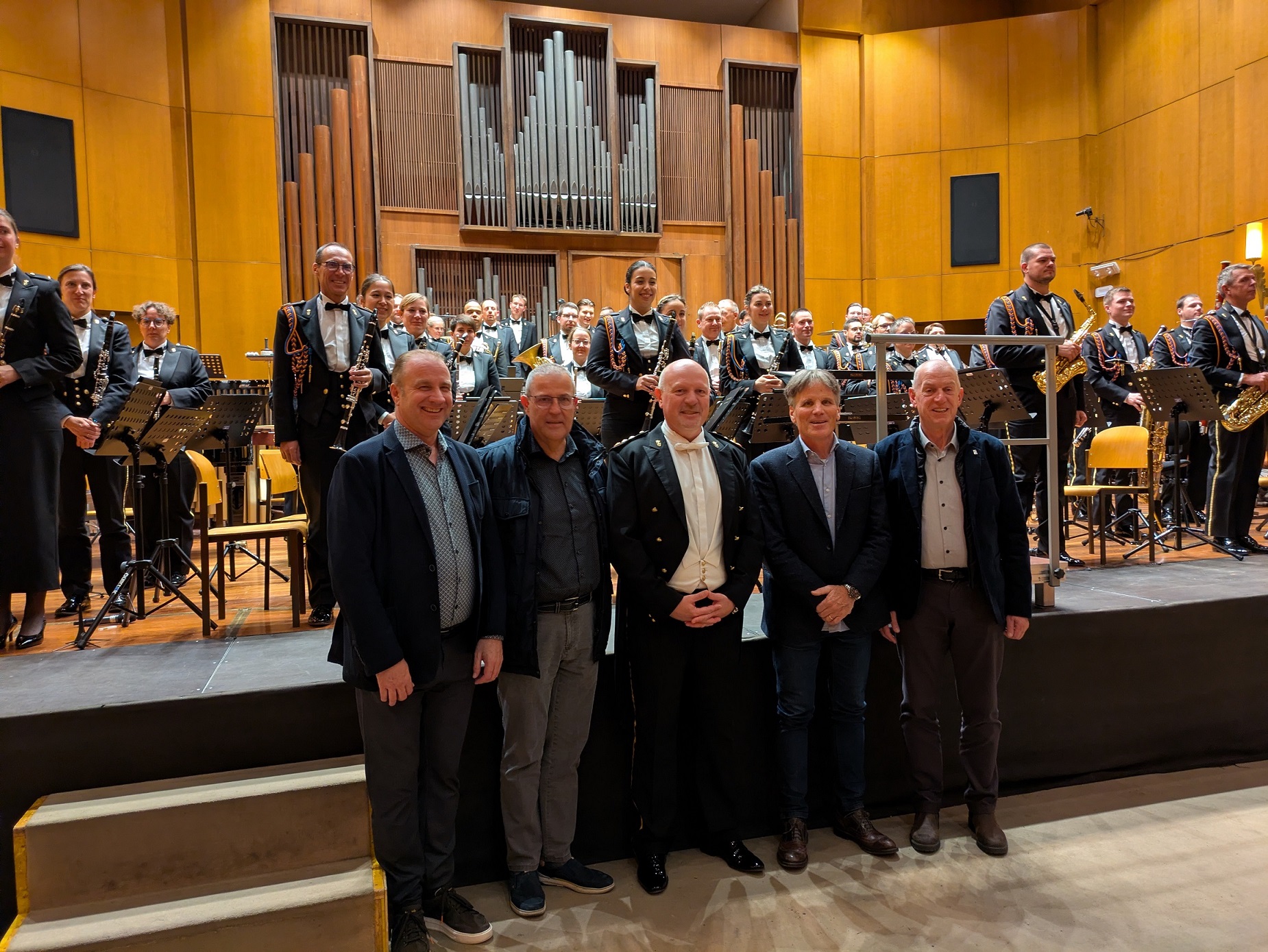 Il 22 novembre, 84 spettatori si sono riuniti al Conservatorio Claudio Monteverdi di Bolzano per un concerto di beneficenza dell’Orchestra Musique Militaire Grand-Ducale del Lussemburgo a favore della Lebenshilfe. L’orchestra ha conquistato il pubblico con un concerto fenomenale! L’evento era stato reso possibile grazie alle ottime relazioni e alla mediazione di Thomas Ludescher, professore di direzione di orchestra di fiati al Conservatorio di Bolzano, in collaborazione con il suo amico Georg Horrer, responsabile di settore presso la Lebenshilfe e lui stesso direttore d’orchestra. Ringraziamo di cuore i due organizzatori e i 60 musicisti lussemburghesi per aver preparato e gestito la serata, così come tutti gli ospiti che hanno fatto una donazione a Lebenshilfe. Il ricavato sarà utilizzato per l’acquisto di strumenti che saranno messi a disposizione del nostro Laboratorio musicale pedagogico. Durante il suo soggiorno in Alto Adige, l’orchestra ha alloggiato presso l’hotel Masatsch della Lebenshilfe.